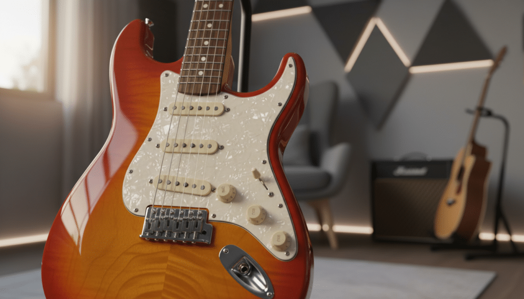 Hardware: Die Chrom-Hardware, einschließlich der Stimmmechaniken und des Tremolosystems, ist robust und zuverlässig. Die Stimmmechaniken halten die Stimmung stabil, während das Tremolosystem dir die Möglichkeit gibt, subtile Vibrato-Effekte zu erzeugen.